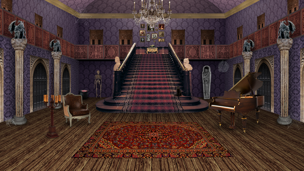 Digital backgrounds for videos and animations made with Adobe Photoshop using collage and illustration.